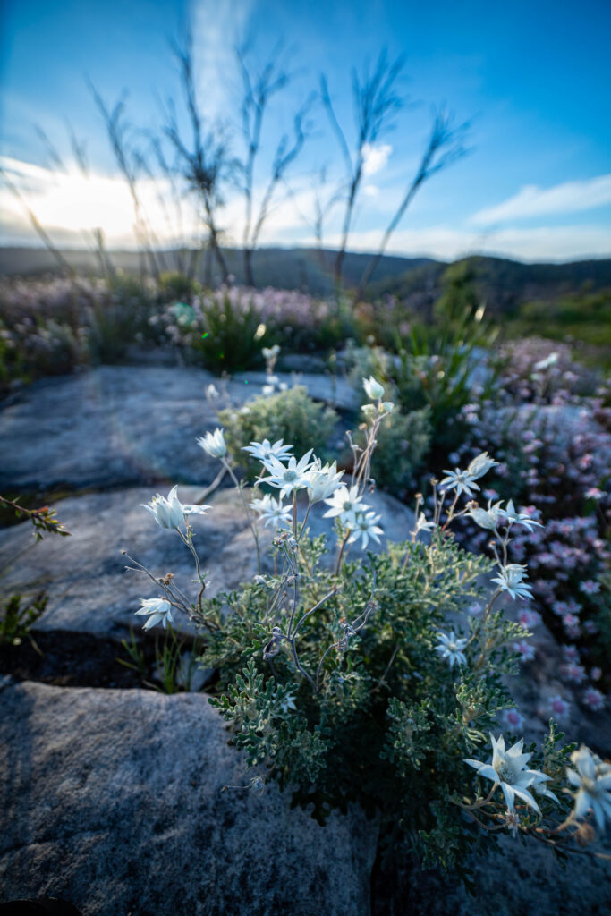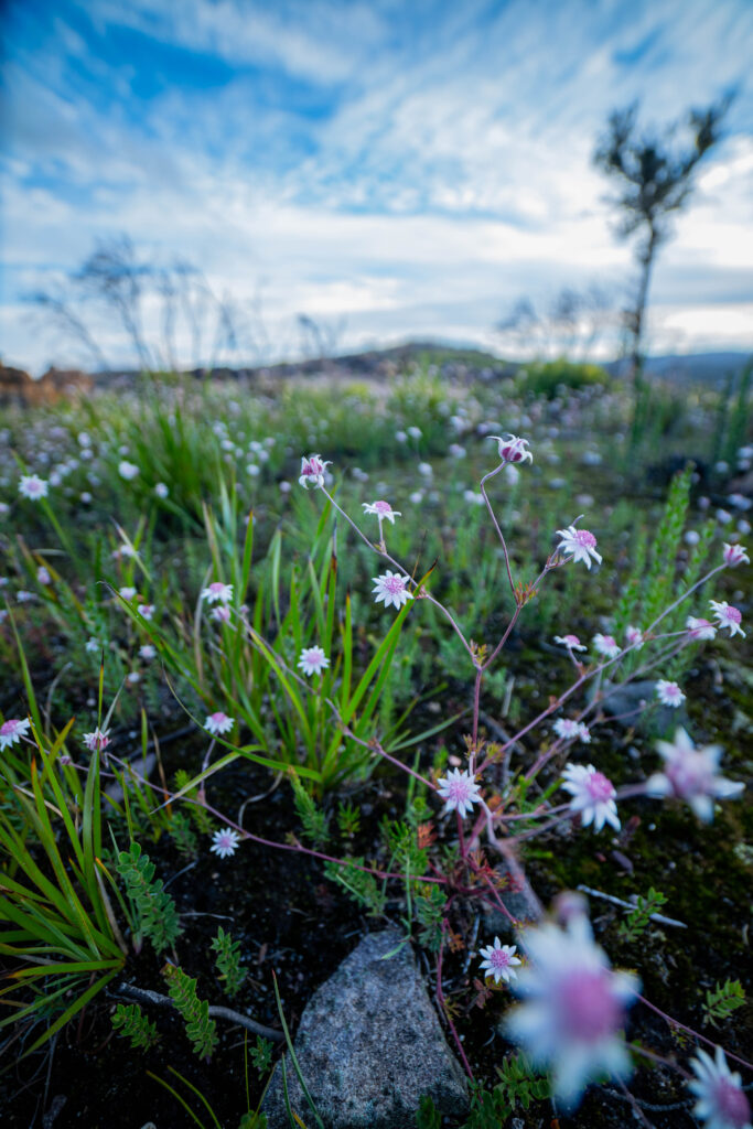 The very lovely display of pink flannel flowers that are bursting in the Blue Mountains at the moment are a beautiful side effect of the devastating bushfires and then flooding of just over 12 months ago. These one, specific, ultra rare, tiny little flannel flower in their soft pink colouring, only flower after bushfires and I hope that their appearance is a sign of increased bush regeneration to come.